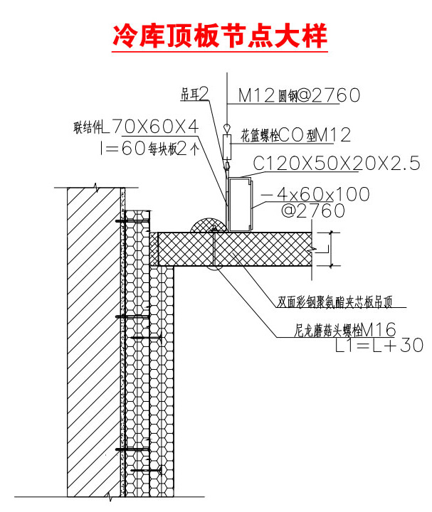 冷库板被自攻螺钉连接在檩条上,插接式连接。